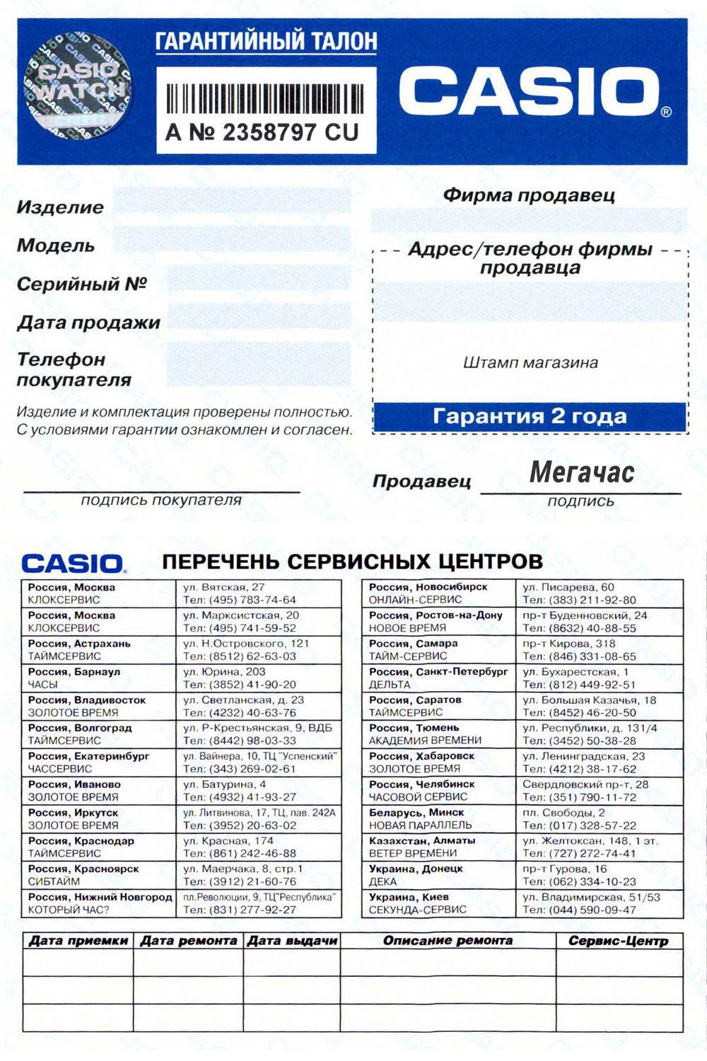 - - Для всех часов Casio гарантийный талон с голограммой и уникальным штрих-кодом!